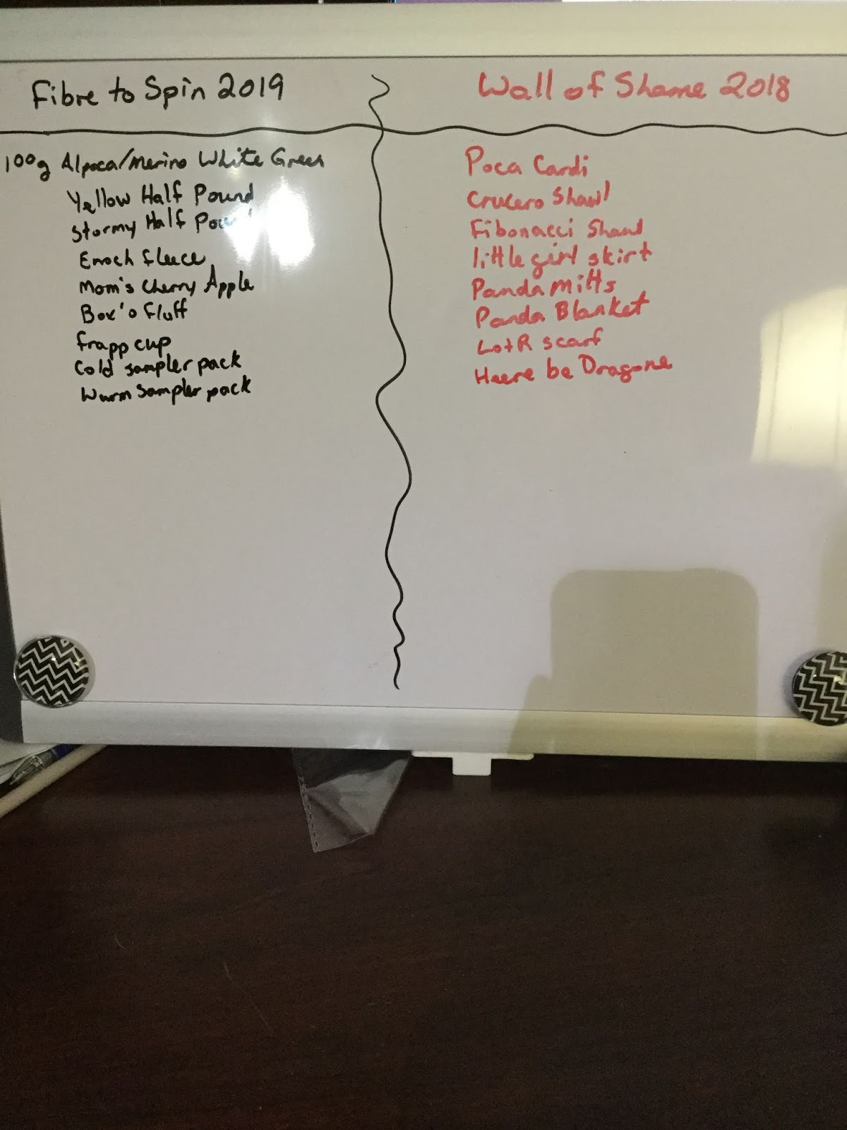 I have been plotting and planning in addition to my Make Nine 2019, I have some Wall of Shame projects that got ignored once Christmas knitting kicked in. I will likely be making pages for each of my lists, but for now I am surviving with my planner and my whiteboard.